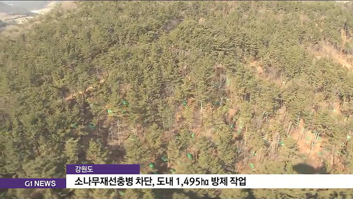 강원도는 소나무재선충병 피해 확산을 차단하기 위해 올해 39억 원을 투입해 도내 산림 1,495ha에 대한 지상·무인 항공 방제 작업을 벌입니다.