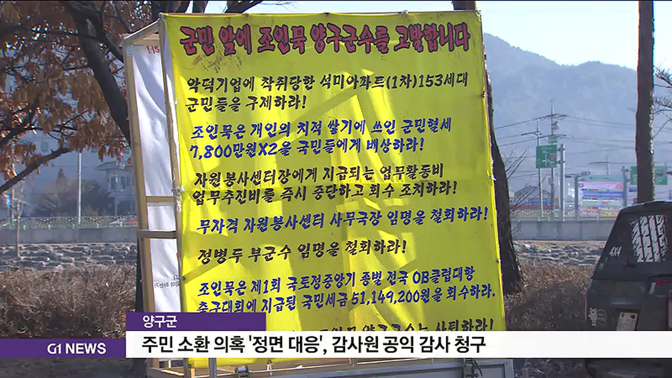 양구군이 최근 양구청년경제인연합회가 제기한 군정 의혹 전반에 대해 감사원에 공익 감사를 청구했습니다.