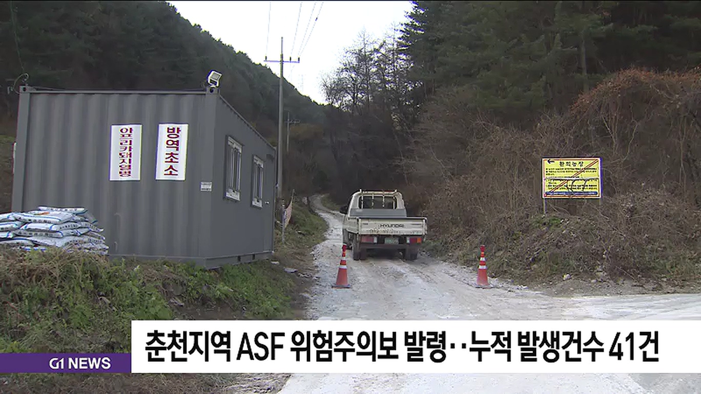 춘천시는 ASF 위험주의보가 발령돼, 24시간 ASF 비상대응체계가 유지되고 양돈농장에 대한 차단 방역이 강화된다고 밝혔습니다.