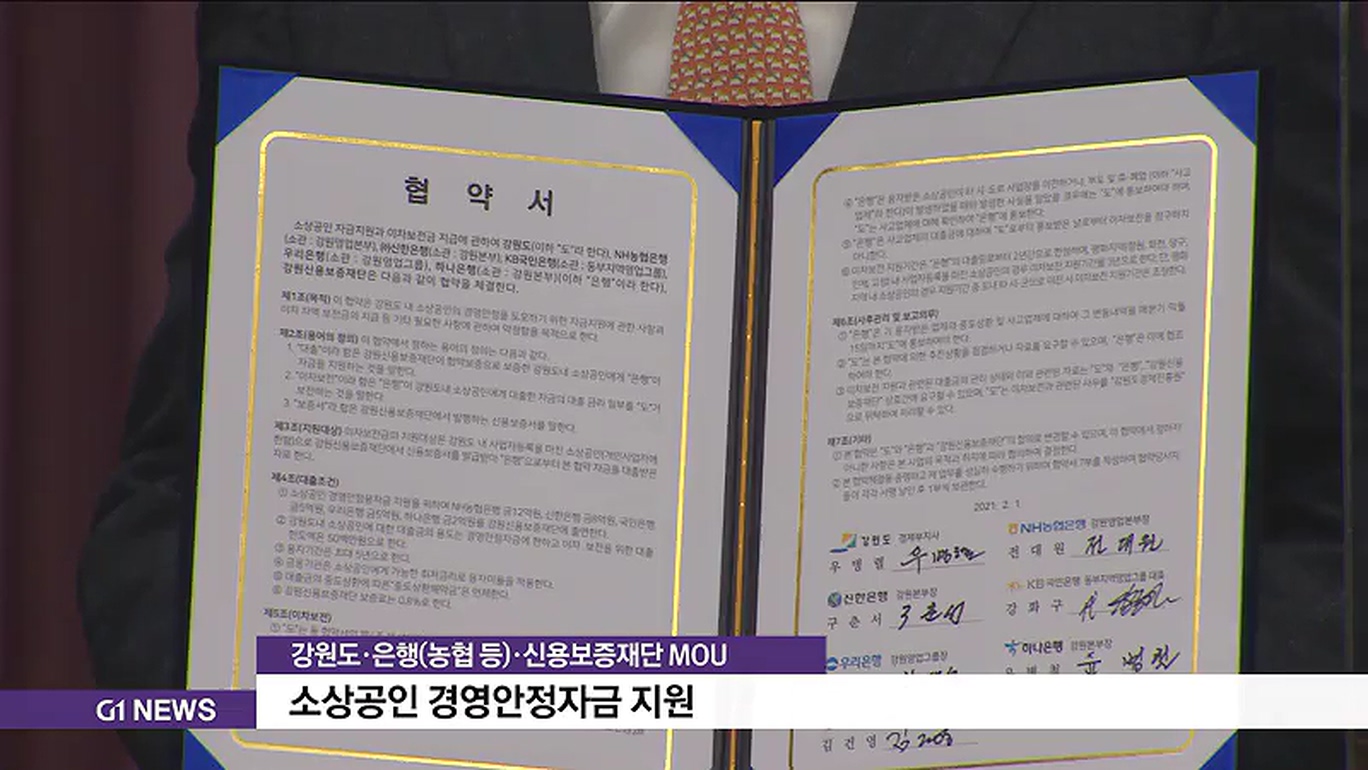 강원도와 농협 등 은행 5곳, 신용보증재단은 오늘(1일) 업무협약을 맺고, 도내 소상공인을 대상으로 경영안정자금을 지원하기로 했습니다.
