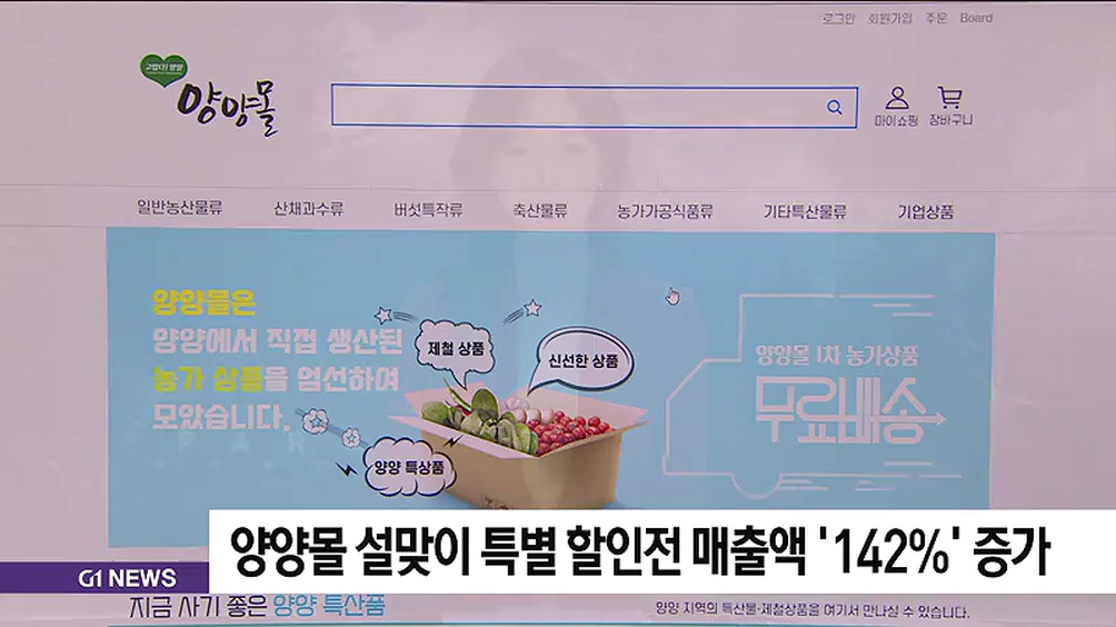 올해 설 연휴동안 양양군이 직영하는 농가 직거래 쇼핑몰인 '양양몰' 매출이 크게 증가한 것으로 나타났습니다.