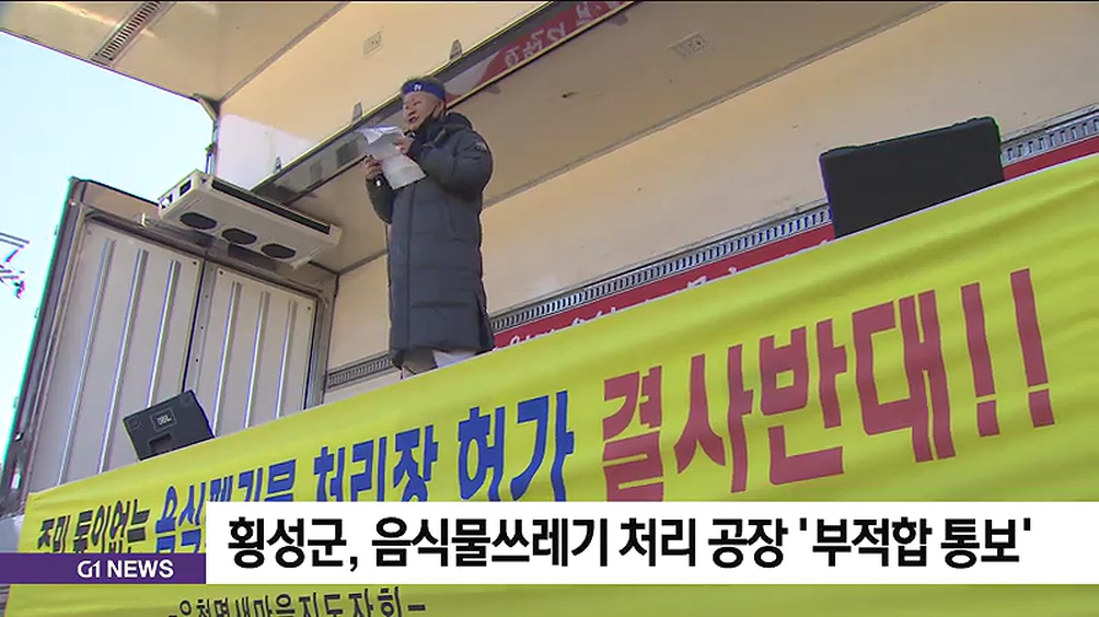 횡성군 우천면에 대규모 음식물쓰레기 처리 공장 설립이 추진돼 주민들이 반발하고 있다는 최근 G1 뉴스 보도와 관련해, 횡성군도 해당 시설물이 부적합하다고 판단했습니다.