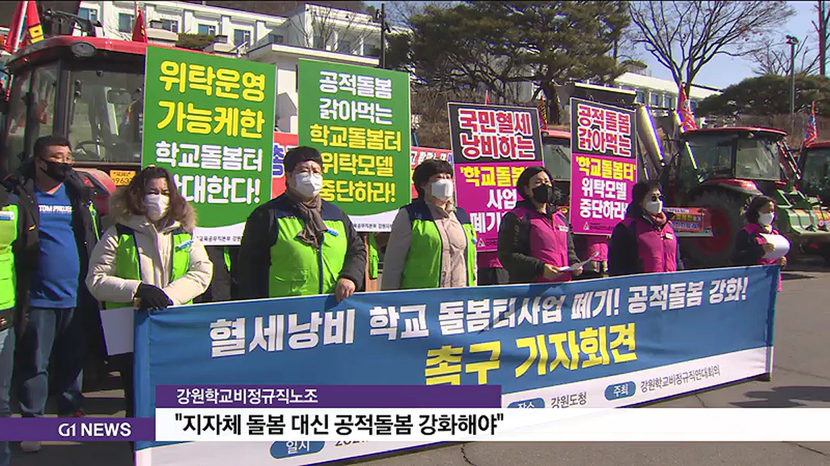 강원학교비정규직노조는 기자회견을 열고, 정부가 추진하는 지자체돌봄 대신 공적돌봄이 강화돼야 한다고 주장했습니다.