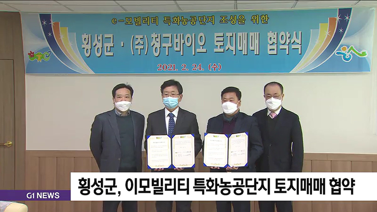 협약식을 통해 횡성군은 청구바이오가 소유한 조곡리 일대 21만 5천㎡ 부지를 182억 원에 매입해 이모빌리티 특화농공단지로 개발할 계획입니다.