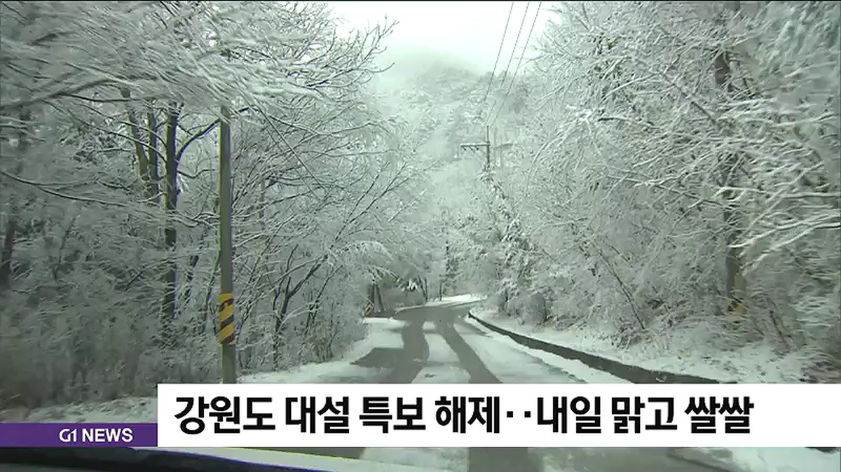 어제부터 이어진 강원지역 대설 특보는 모두 해제된 가운데, 내일 강원도는 대체로 맑고 쌀쌀하겠습니다.