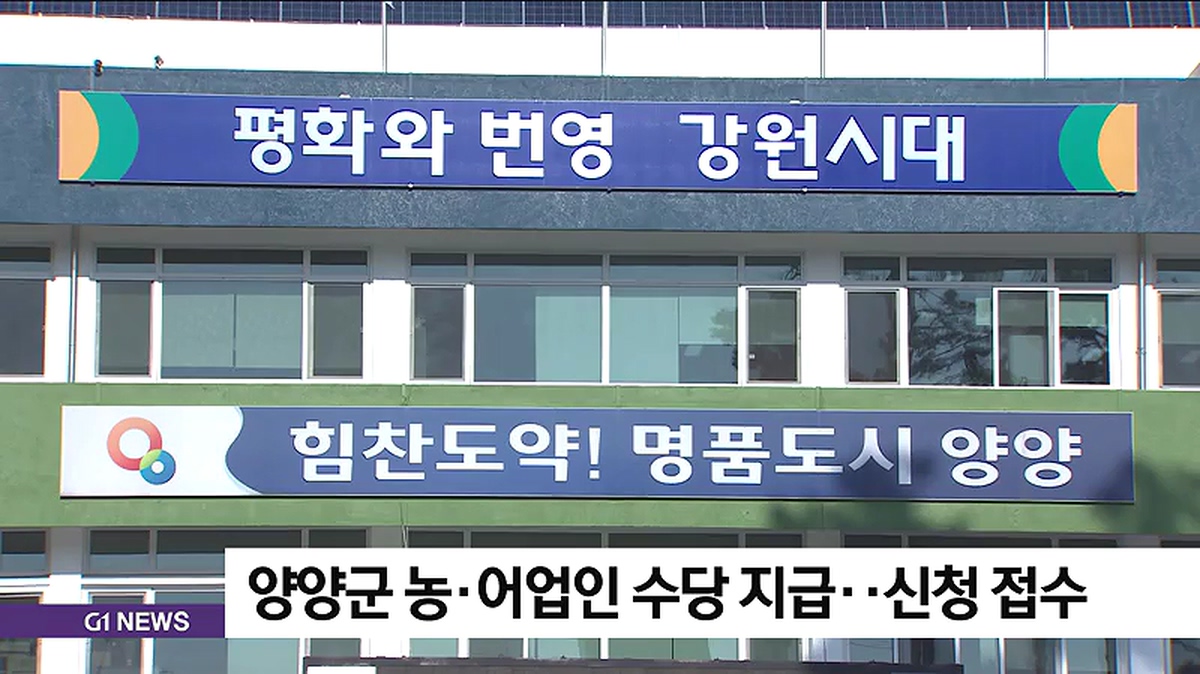 대상은 2년 이상 도내 거주하면서 양양군에 주민등록이 된 경작면적 1,650㎡ 이상, 330㎡ 이상 특용작물·축산 농가와 2년 이상 어업경영체로 등록된 어가입니다.