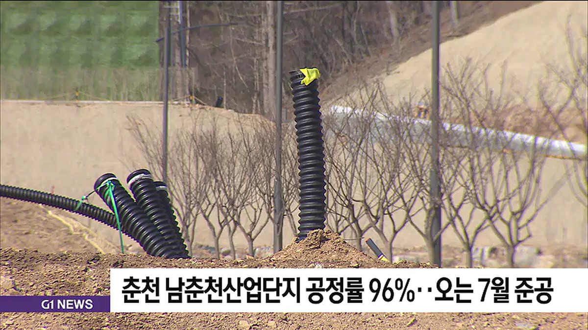 춘천시는 사업비 511억 원을 투입해 남산면 광판리와 동산면 군자리 일대 145만여㎡ 부지에 조성하고 있는 남춘천산업단지의 공정률이 96%로, 오는 7월 준공될 예정이라고 밝혔습니다.