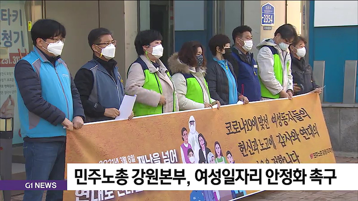 전국민주노동조합총연맹 강원지역본부는 '세계 여성의 날' 113주년을 맞아, 코로나19 사태 속 여성일자리 안정화를 정부에 촉구했습니다.