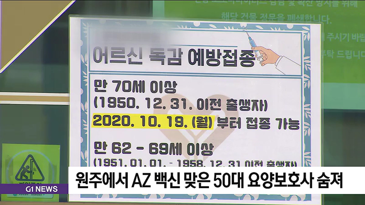 원주에서 AZ 백신 맞은 50대 요양보호사 숨져