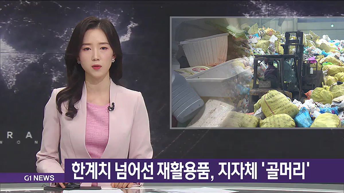 "끝 간 데 없이 늘어나는 재활용 쓰레기를 감당하기 위해, 다같이 줄이고 제대로 버리는 노력이 절실한 때입니다. G1뉴스 원석진입니다."