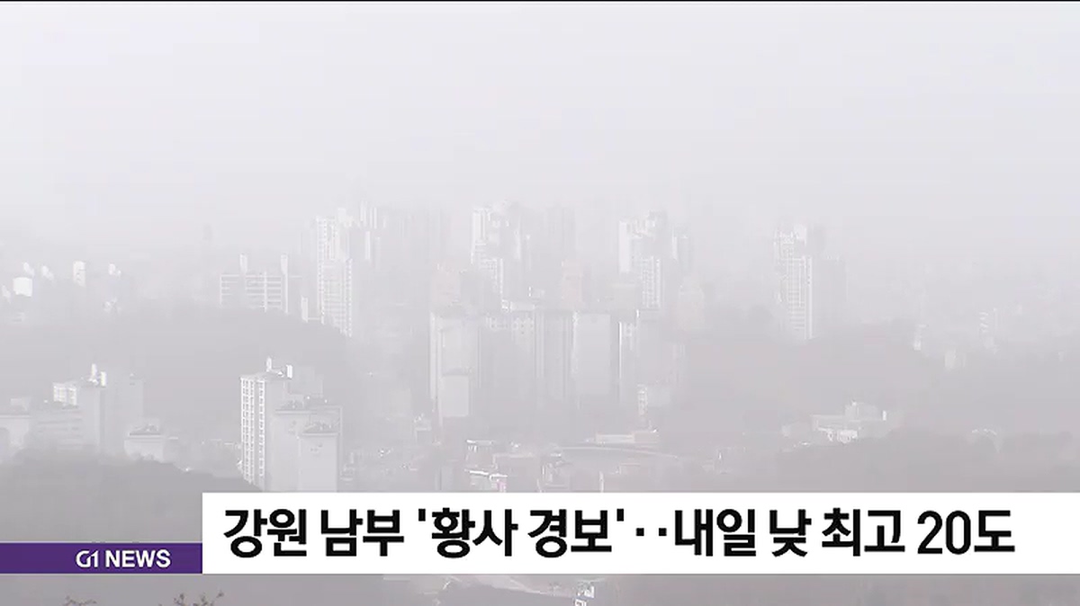 강원 남부 '황사 경보'..내일 낮 최고 20도