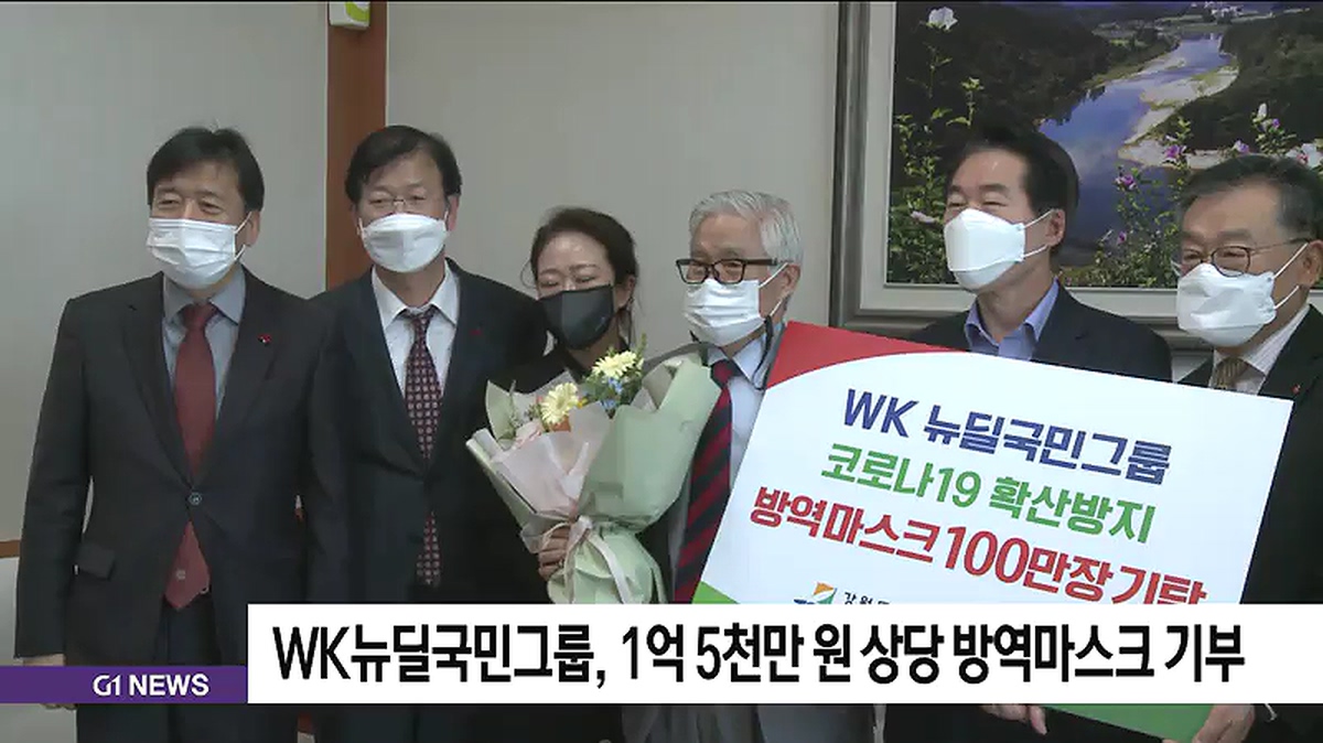 WK 뉴딜국민그룹이 강원도민의 '코로나19' 극복을 위해 써달라며 1억 5천만 원 상당의 방역마스크를 강원도에 기부했습니다.