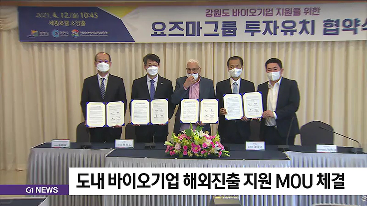 강원도와 춘천시, 이스라엘 요즈마그룹은 춘천바이오산업진흥원에서 업무 협약을 맺고, 도내 벤처기업 육성을 위한 강원형 벤처펀드와 도내 5개 바이오 벤처기업 투자를 협의했습니다.