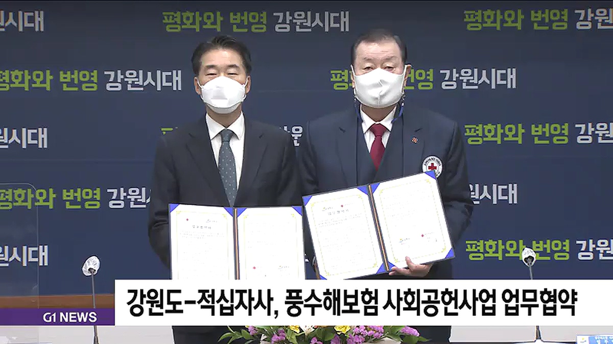 이번 협약을 통해 강원도와 대한적십자사는 도내 8개 공공기관에서 기탁받은 자금을 통해 재해취약지역내 거주 세대의 풍수해보험 자부담금을 지원할 계획입니다.