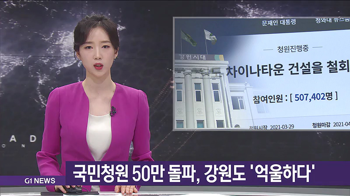 청와대 국민청원 게시판에는 "강원도 차이나타운 건설을 철회해주세요"라는 청원에 51만 명에 가까운 국민이 동참했습니다.
