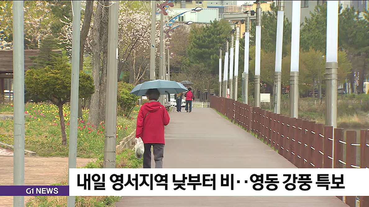 내일 영서지역 낮부터 비..영동 강풍 특보