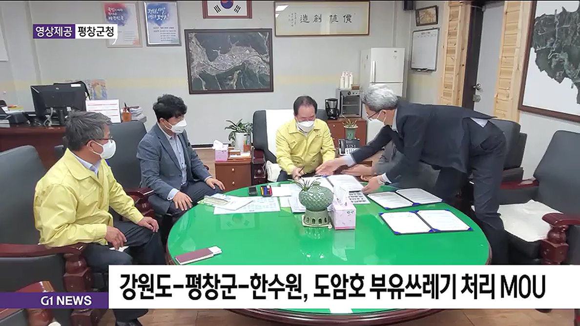 강원도와 평창군, 한국수력원자력은 평창군 도암호 유역 부유 쓰레기 처리를 위한 업무협약을 맺었습니다.