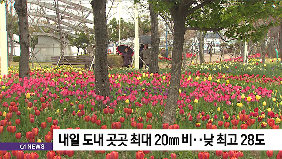 내일 도내 곳곳 최대 20mm 비..낮 최고 28도