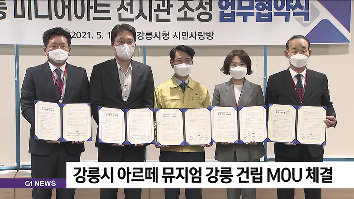강릉시는 오늘 시청 시민사랑방에서 '아르떼 뮤지엄 강릉' 건축, 콘텐츠 제작과 투자 업체 등 4개 업체와 세계적인 수준의 전시관을 조성하기로 합의했습니다.