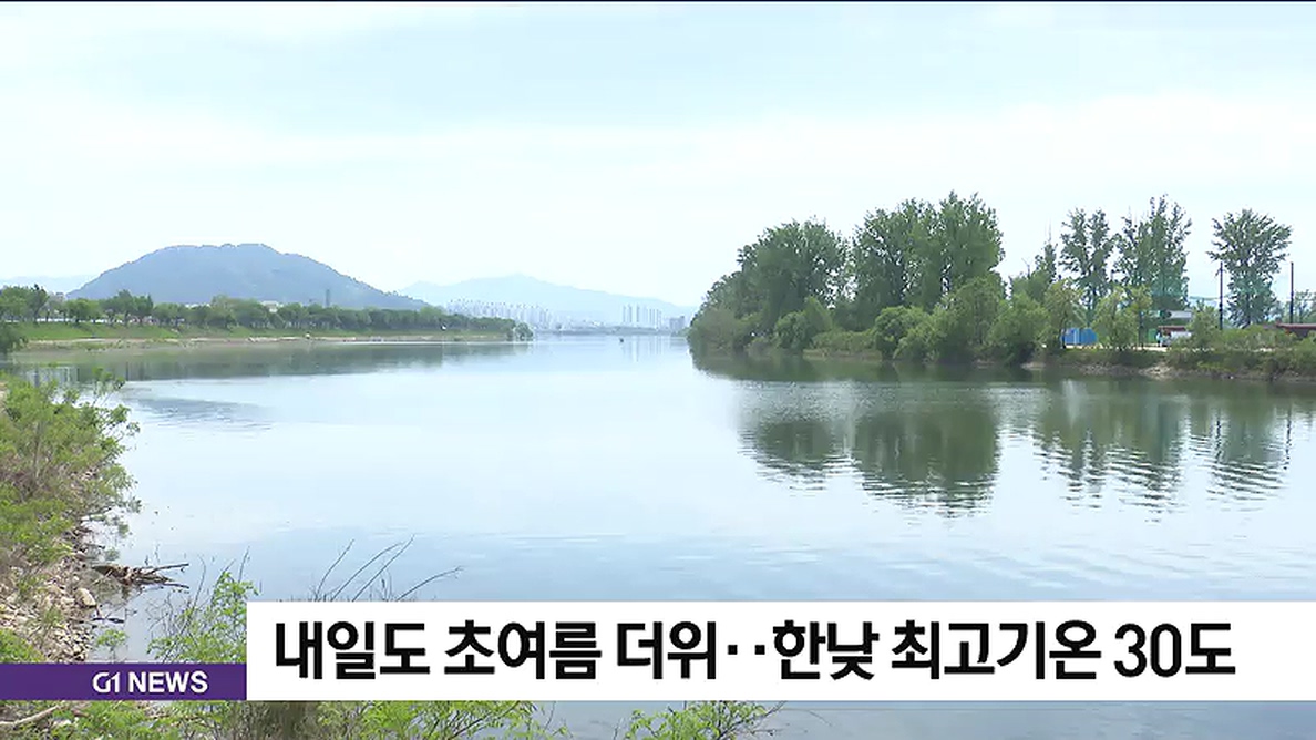 내일 아침 최저기온은 15도 안팎이겠고, 낮 최고기온은 영서와 영동권 모두 30도에 육박하겠습니다.