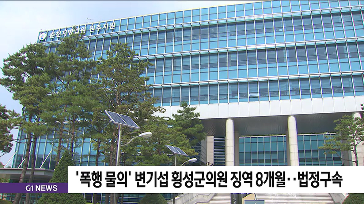 춘천지법 원주지원은 특수상해 혐의로 불구속 기소된 변기섭 횡성군의원에게 징역 8개월을 선고하고 법정 구속했다고 밝혔습니다.
