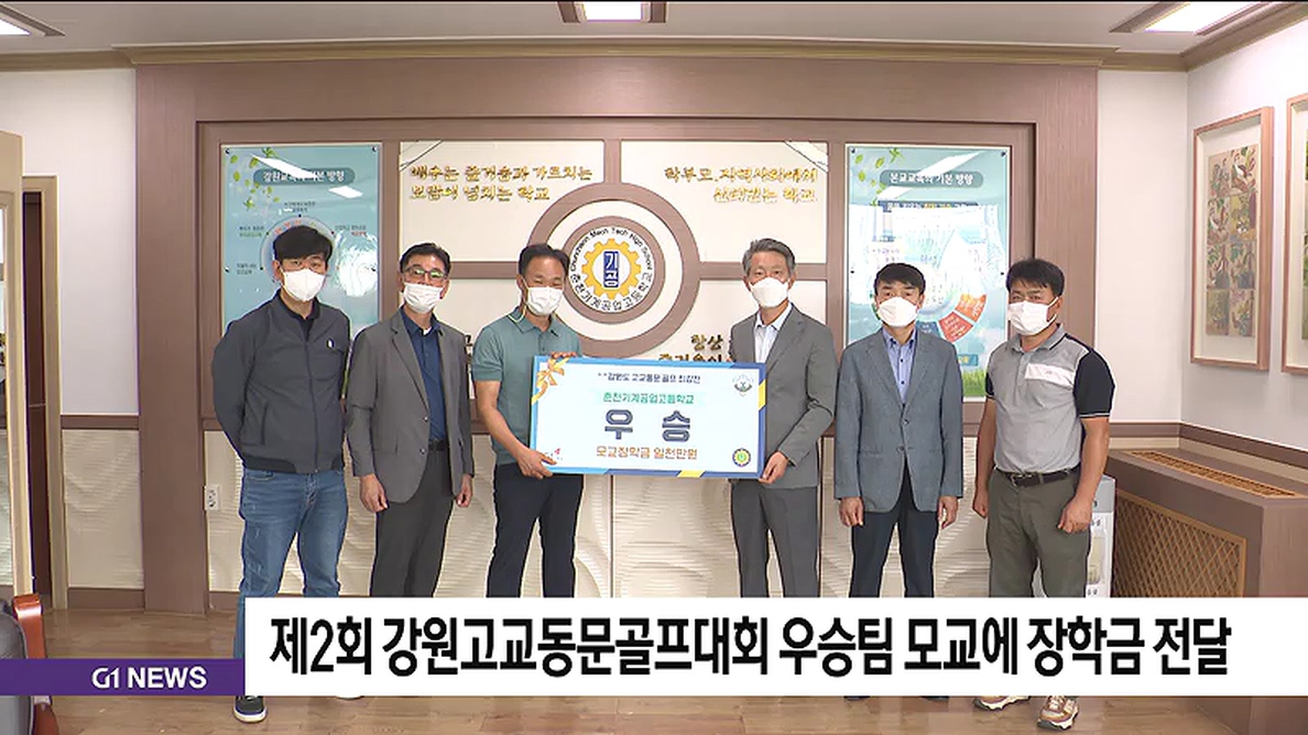 G1방송이 주최한 제2회 강원고교동문골프 최강전 우승팀들이 우승 상금 전액을 모교에 전달했습니다.