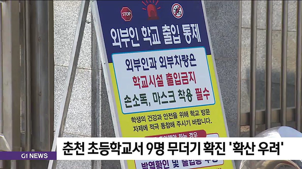 어제 확진자가 나온 춘천의 한 초등학교에선 초등학생 7명과 교사 1명, 방역지원 인력 1명 등 9명이 확진 판정을 받았습니다.
