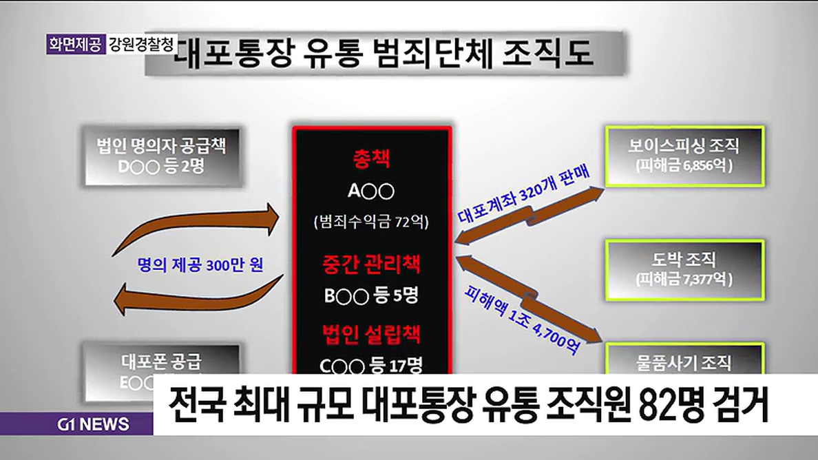 전국 최대 규모 대포통장 유통 조직원 82명 검거