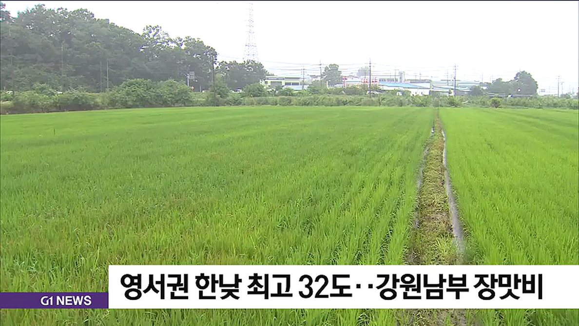 아침 최저기온은 18도에서 21도, 낮 최고기온은 영서권이 29도에서 32도, 영동권은 26도에서 29도의 분포를 보이겠습니다.