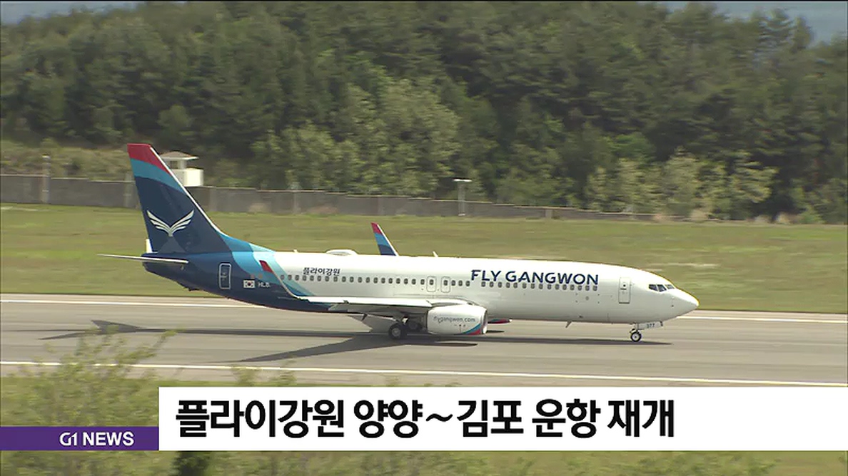 양양국제공항을 기반으로 하는 플라이강원이 양양~김포 노선 운항을 재개했습니다.