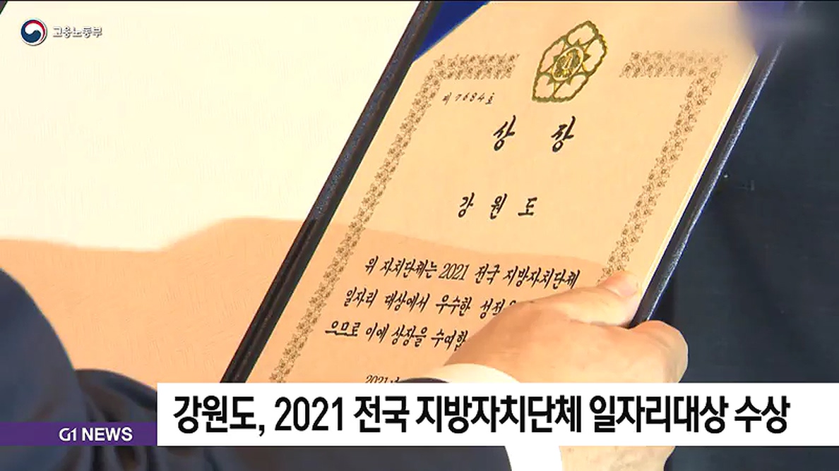 고용노동부가 주관하는 '2021 전국 지방자치단체 일자리대상'에서 강원도가 대상을 수상했습니다.