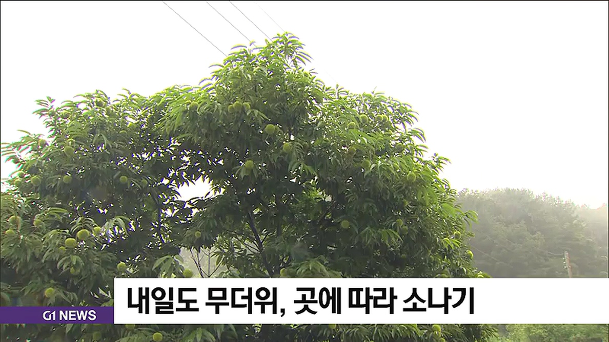 내리는 비는 10~60mm로 예상되며, 한낮 최고기온은 32도로 오늘과 비슷한 무더위가 이어지겠습니다.