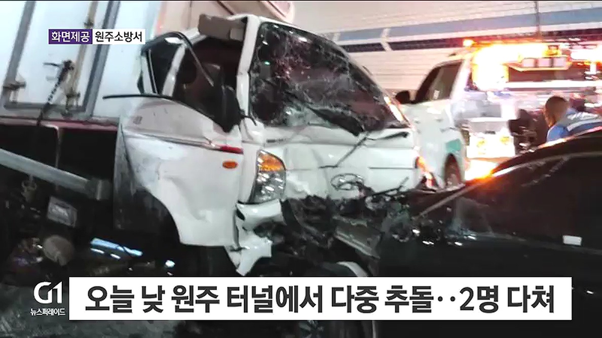 오늘 낮 원주 터널에서 다중 추돌..2명 다쳐