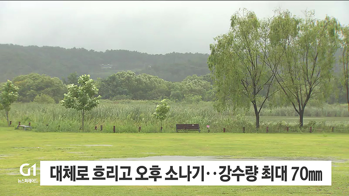 대체로 흐리고 오후 소나기..강수량 최대 70mm