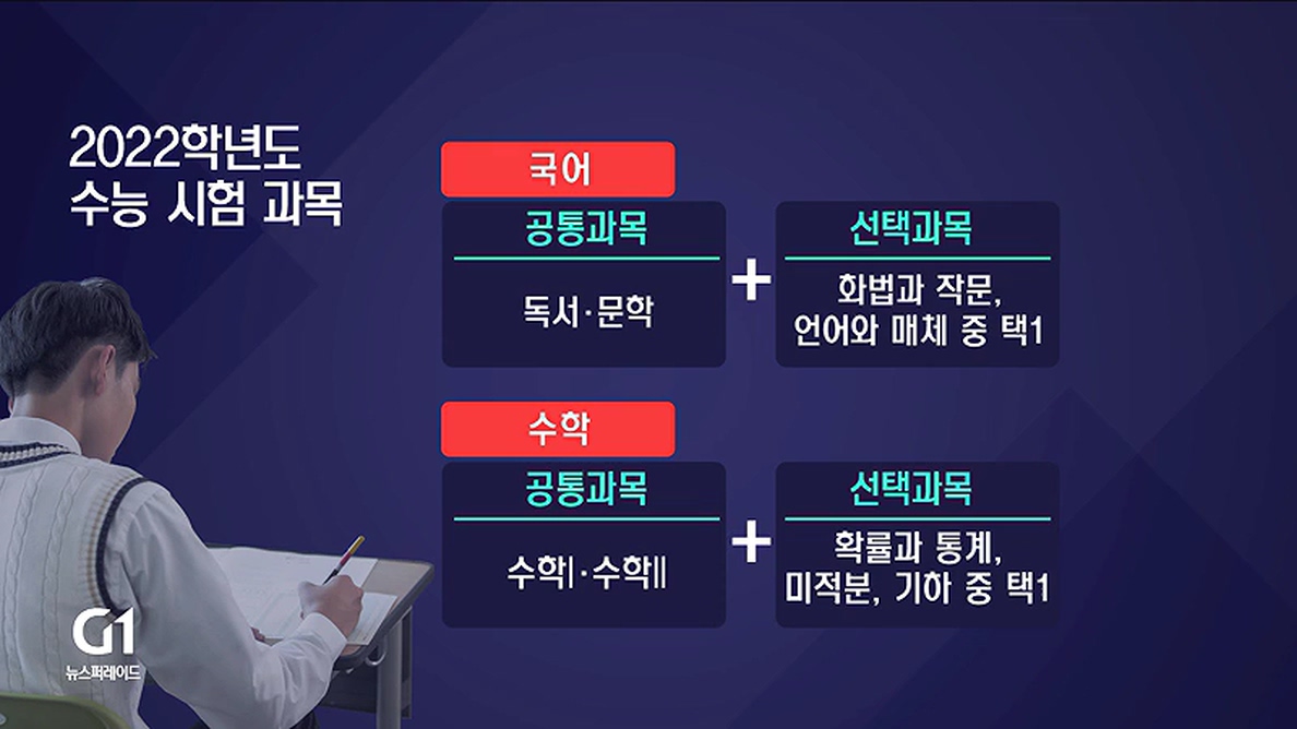 문,이과에 관계없이, 국어에선 '독서·문학'을, 수학에선 '수학I·II' 시험을 공통으로 보고, 그 외 1개씩 선택해 치릅니다.