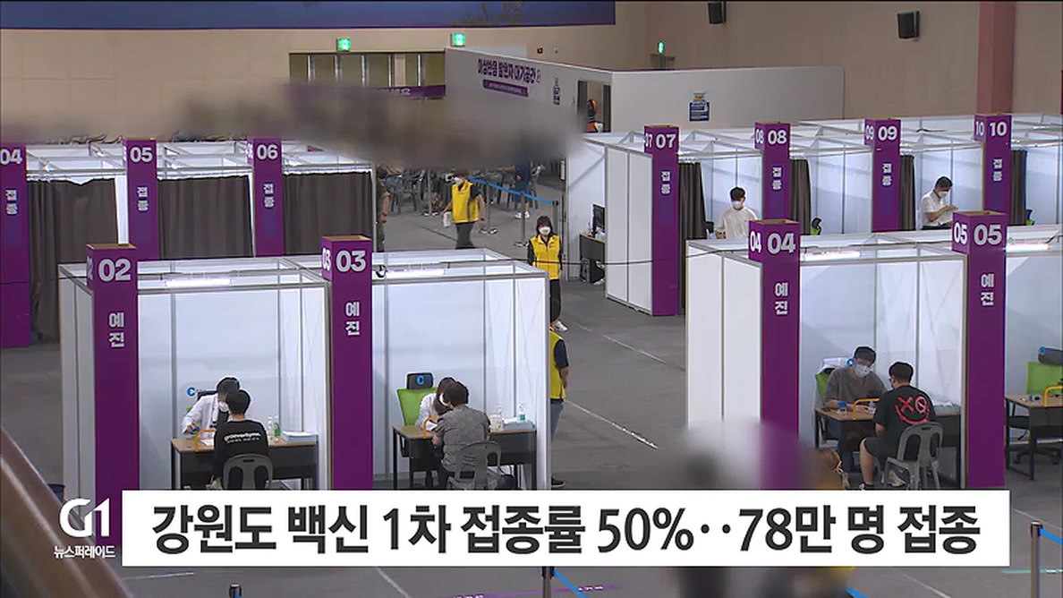 강원도에 따르면, 오늘 오후 2시 기준으로 강원도민 156만 명 중 50%인 78만 명이 백신 1차 접종을 마쳤습니다.