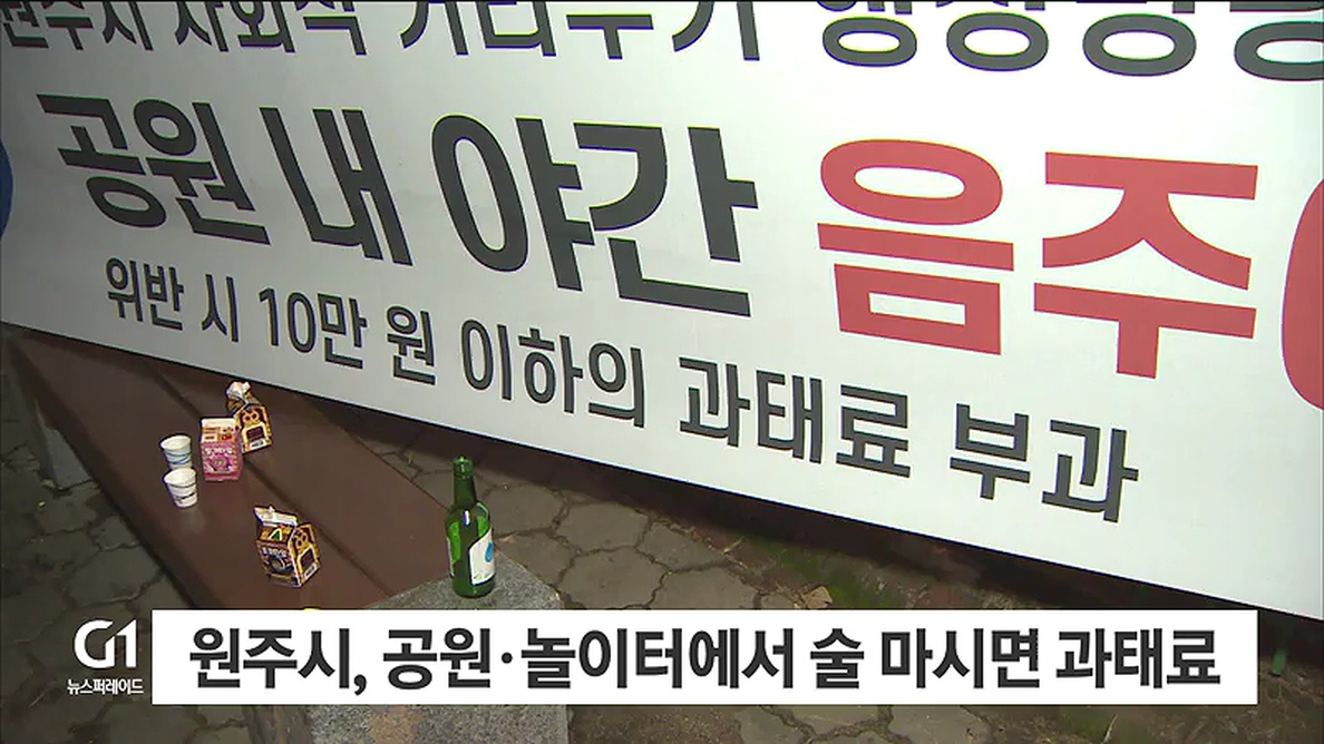 앞으로 원주지역 공원과 어린이 놀이터 등에서 술을 마시다 적발되면 과태료 5만 원이 부과됩니다.