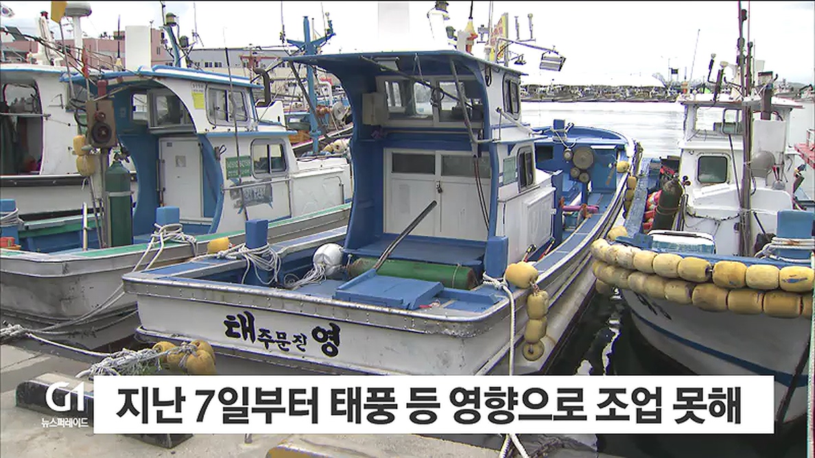 지난 7일 태풍 루핏의 영향으로 풍랑주의보가 발효되면서 조업을 하지 못한게 벌써 2주 쨉니다.