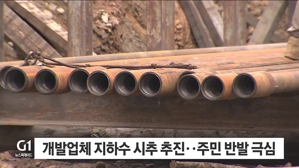한 개발 업체가 지하수 시추 공사를 하고 있는데, 혹여 마을 물길 건드릴까 주민 반대가 극심합니다.