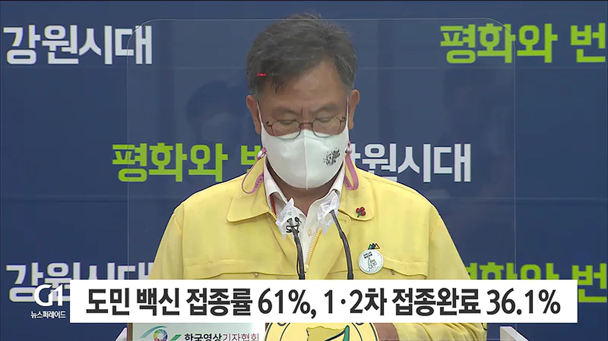 강원도에 따르면, 도내 백신 1차 접종자는 95만 4천여명으로 전체 대비 61.1%를 기록하고 있고, 1·2차 접종을 모두 마친 도민은 36.1%, 56만 4천여명으로 집계됐습니다.