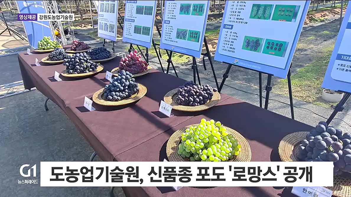 강원도농업기술원이 자체 육성한 포도 '로망스'의 현장 평가회가 오늘(3일) 춘천에서 열렸습니다.