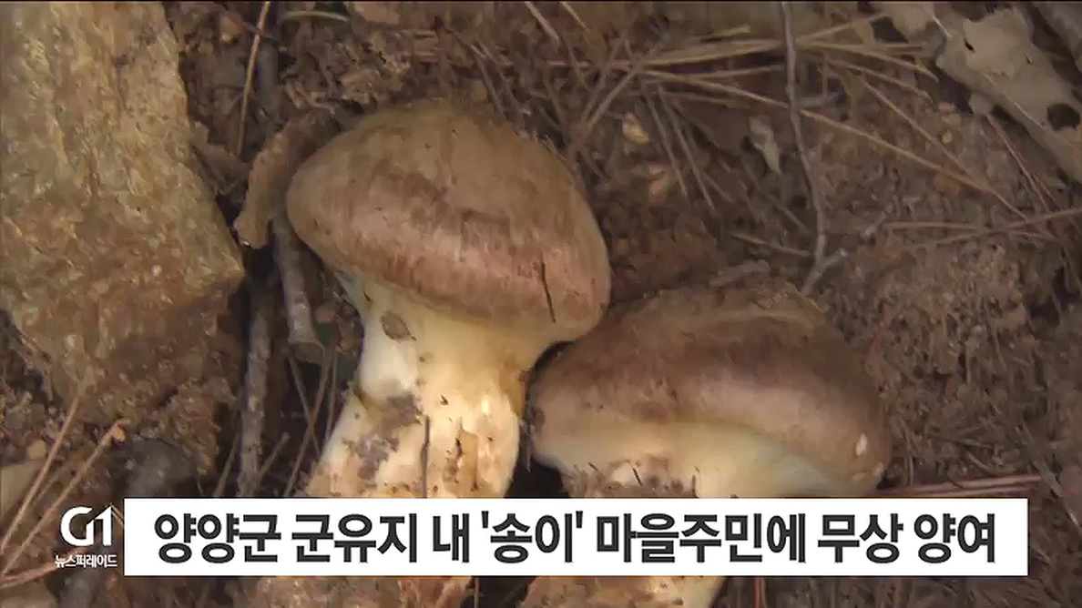 양양군이 송이 채취시기를 맞아 군유림에서 생산되는 임산물의 채취와 매각권을 마을 주민들에게 무상 양여합니다.