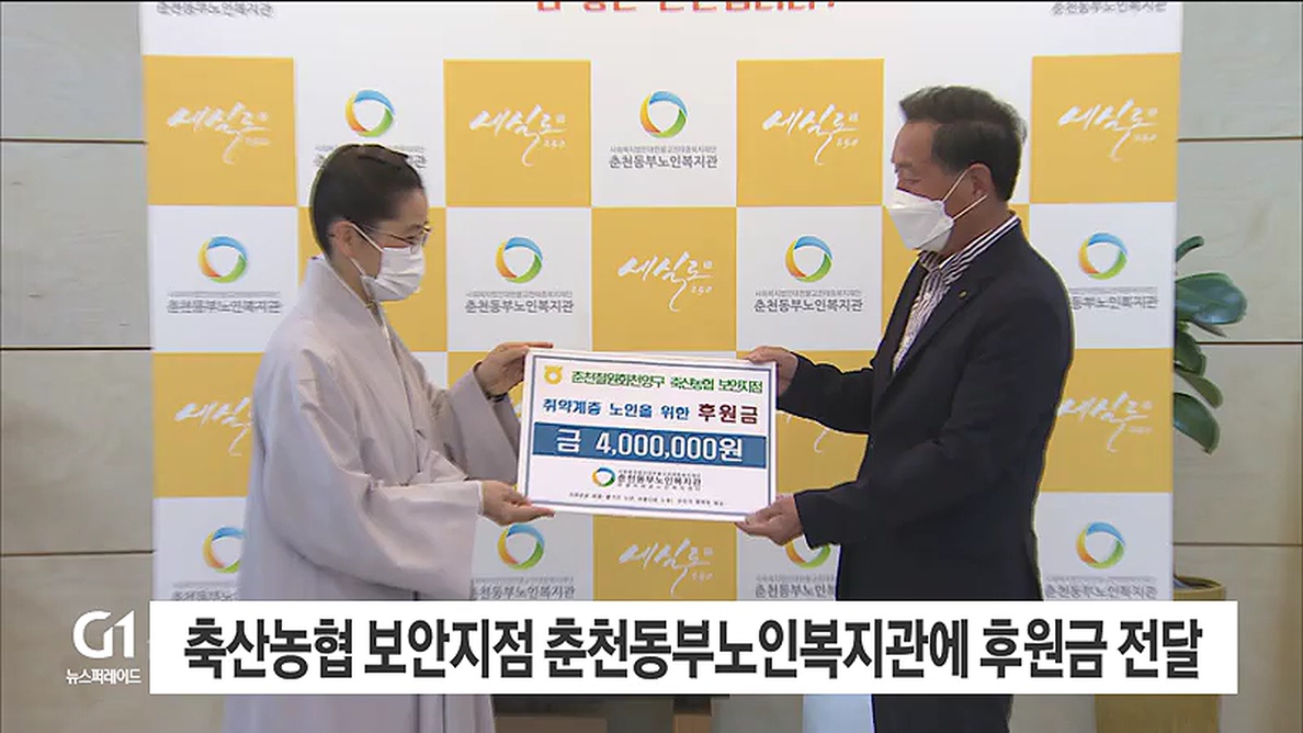 춘천철원화천양구축협은 춘천동부노인복지관에 노인사업 후원금 4백만원을 전달했습니다.