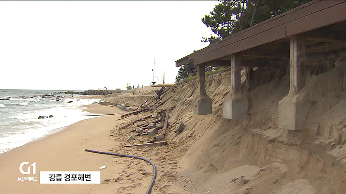 강릉시는 일단 추석 전후로 예정된 태풍이 지나고 난 뒤에 사석을 깔고 모래를 다시 채워넣어 응급 복구하기로 했습니다.