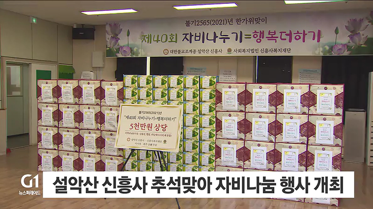 설악산 신흥사가 민족 대명절 추석을 맞아 지역 내 어려운 이웃들과 함께하는 나눔 행사를 열었습니다.