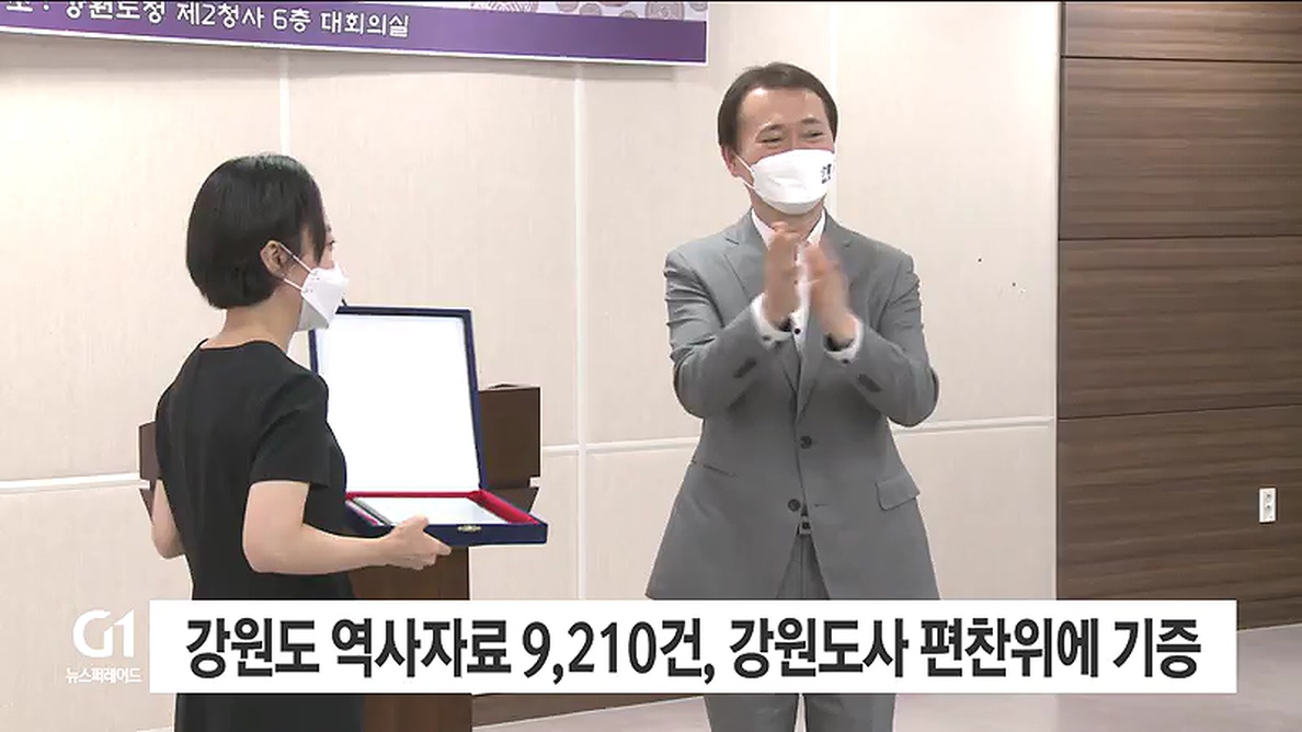 원영환 강원대 명예교수와 고 배재홍 강원도 교수 가족은 평생 수집·소장한 사료영인본과 전국 단위 역사서 등 9,210건을 강원도사 편찬위원회에 기증했습니다.