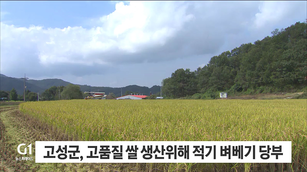 고성군이 고품질 쌀을 생산하기 위해 적기에 벼를 수확해 줄 것을 당부하고 나섰습니다.