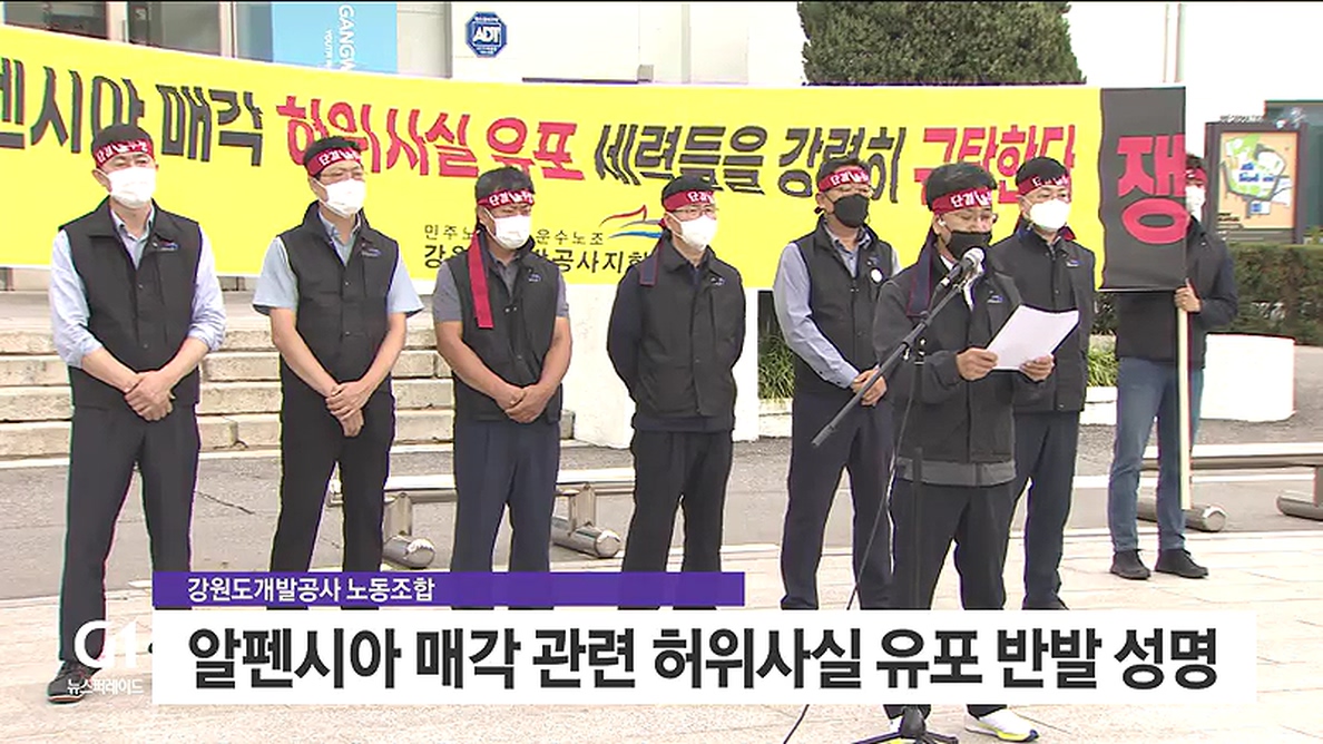 강원도개발공사 노조는 또 알펜시아 매각을 내년 선거에 정치적으로 활용할 경우 집단 행동을 비롯한 강경 대응에 나서겠다고 경고했습니다.