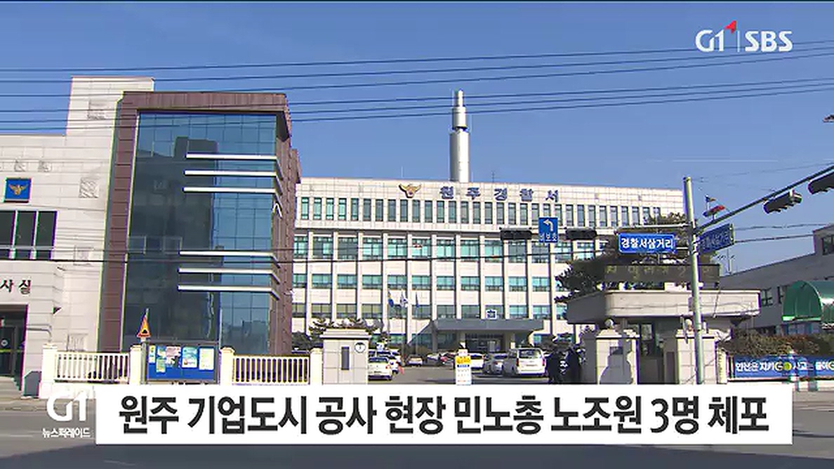 원주경찰서는 오늘(8일) 원주 기업도시의 한 공사 현장에서 민주노총 건설노조 강원지부장 등 노조원 3명을 업무 방해 혐의로 현장 체포했다고 밝혔습니다.