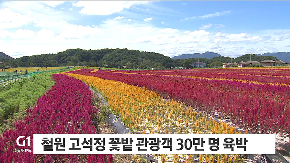 철원군은 지난 달 4일부터 현재까지 고석정 꽃밭에 28만 5,500여 명의 관광객이 다녀가 60억 원이 넘는 경제적 효과가 발생했다고 밝혔습니다.